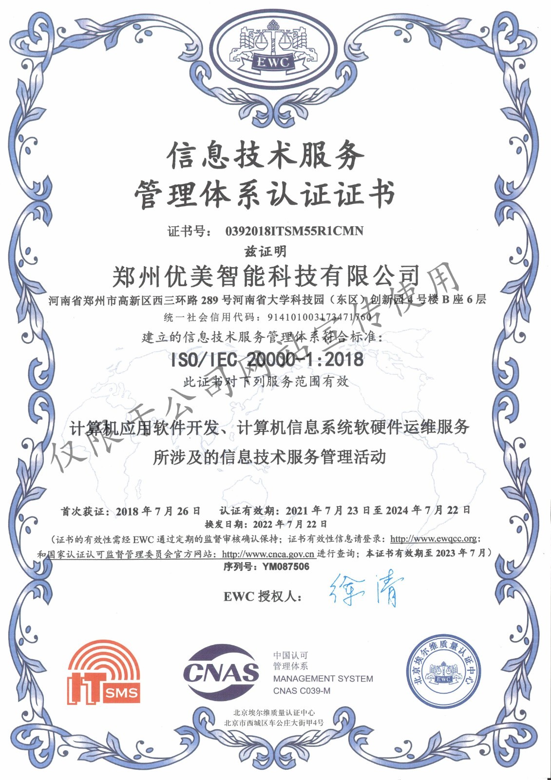 ISO20000信息技術(shù)服務(wù)管理體系認(rèn)證證書