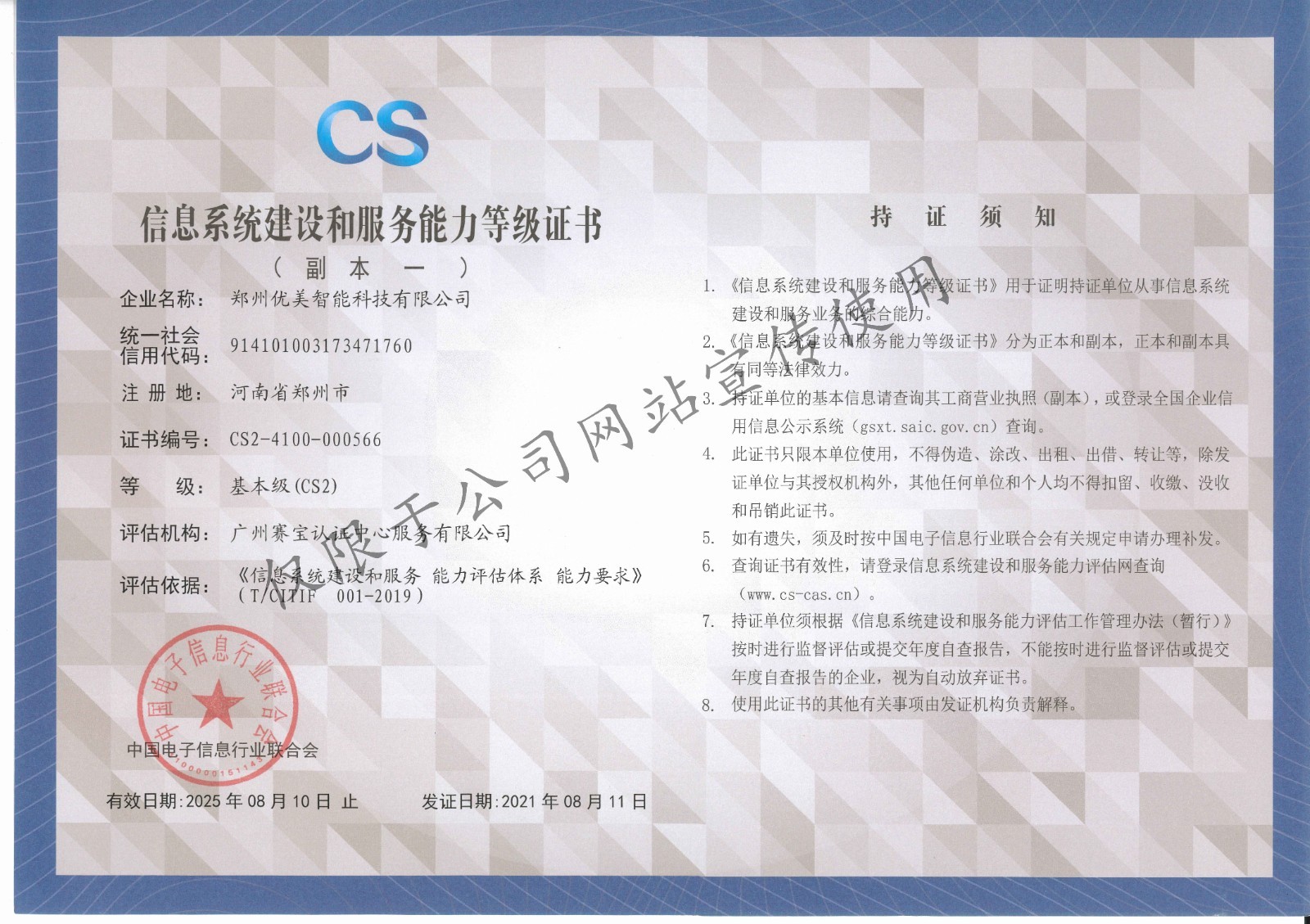 信息系統(tǒng)建設(shè)和服務(wù)能力等級(jí)證書