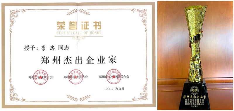 鄭州優(yōu)美智能科技有限公司總經(jīng)理李忠被授予“鄭州杰出企業(yè)家”榮譽(yù)稱號(hào)。