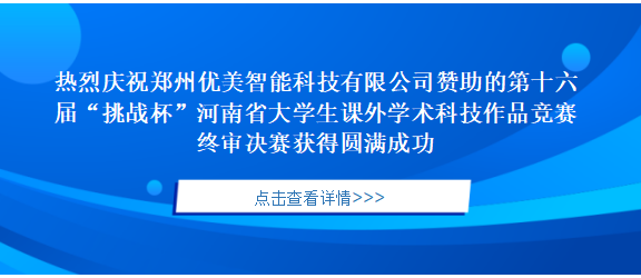 2023年5月12日至5月14日,由共青團河南省委、河南省教育廳、河南省社會科學院、河南省科學技術(shù)協(xié)會、河南省學生聯(lián)合會主辦,華北水利水電大學承辦的第十六屆“挑戰(zhàn)杯”河南省大學生課外學術(shù)科技作品競賽終審決賽在華北水利水電大學龍子湖校區(qū)順利舉行,鄭州優(yōu)美智能科技有限公司作為唯一協(xié)辦單位,一起跟隨全省近90所高校2000余名師生,共同見證這一場青春與夢想的碰撞、科技與創(chuàng)新的盛宴。